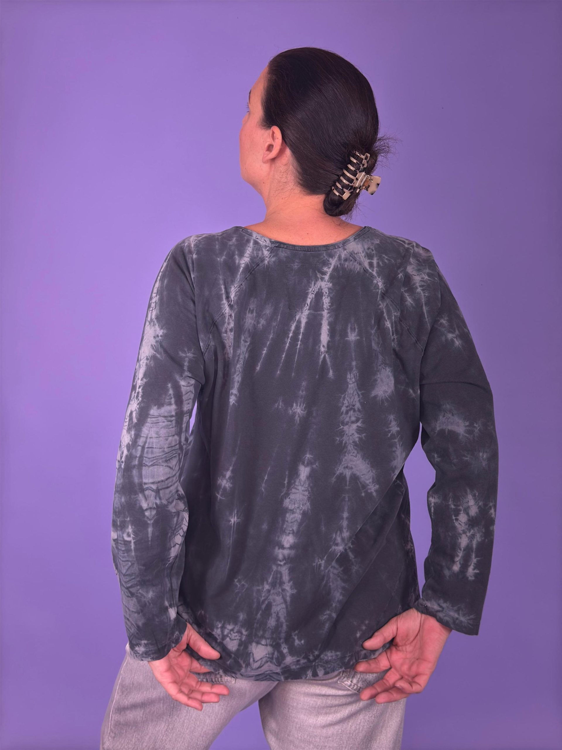 Wir haben den Dreh raus – beim Langarmshirt „Ute“ aus Bio- Baumwolle sind zwei raffinierte Dreieckselemente am Saum eingesetzt – unser Twist lässt weibliche Figuren unbeschreiblich aussehen! Das hochwertige Material sorgt für ein superweiches Tragegefühl.