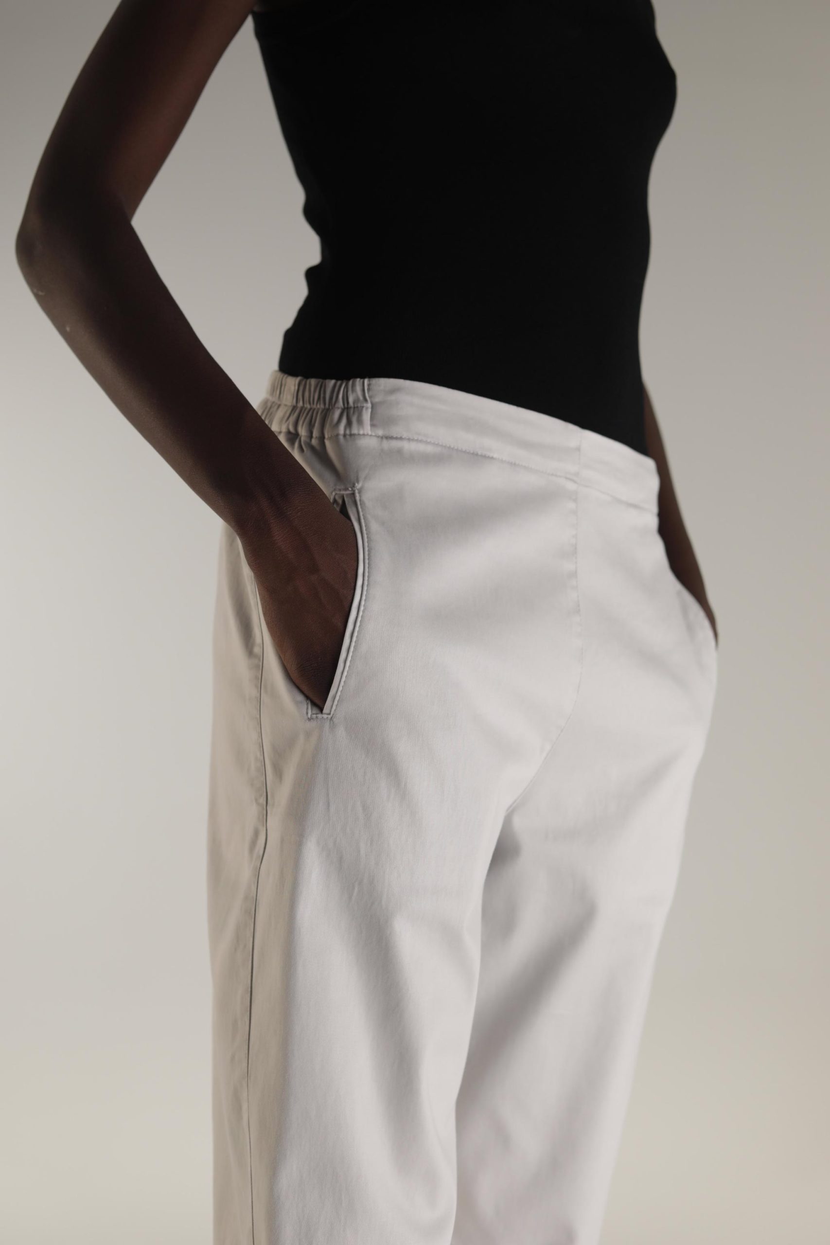 Bequeme, anliegende Hose mit elastischem Gummizug im hinteren Bund
