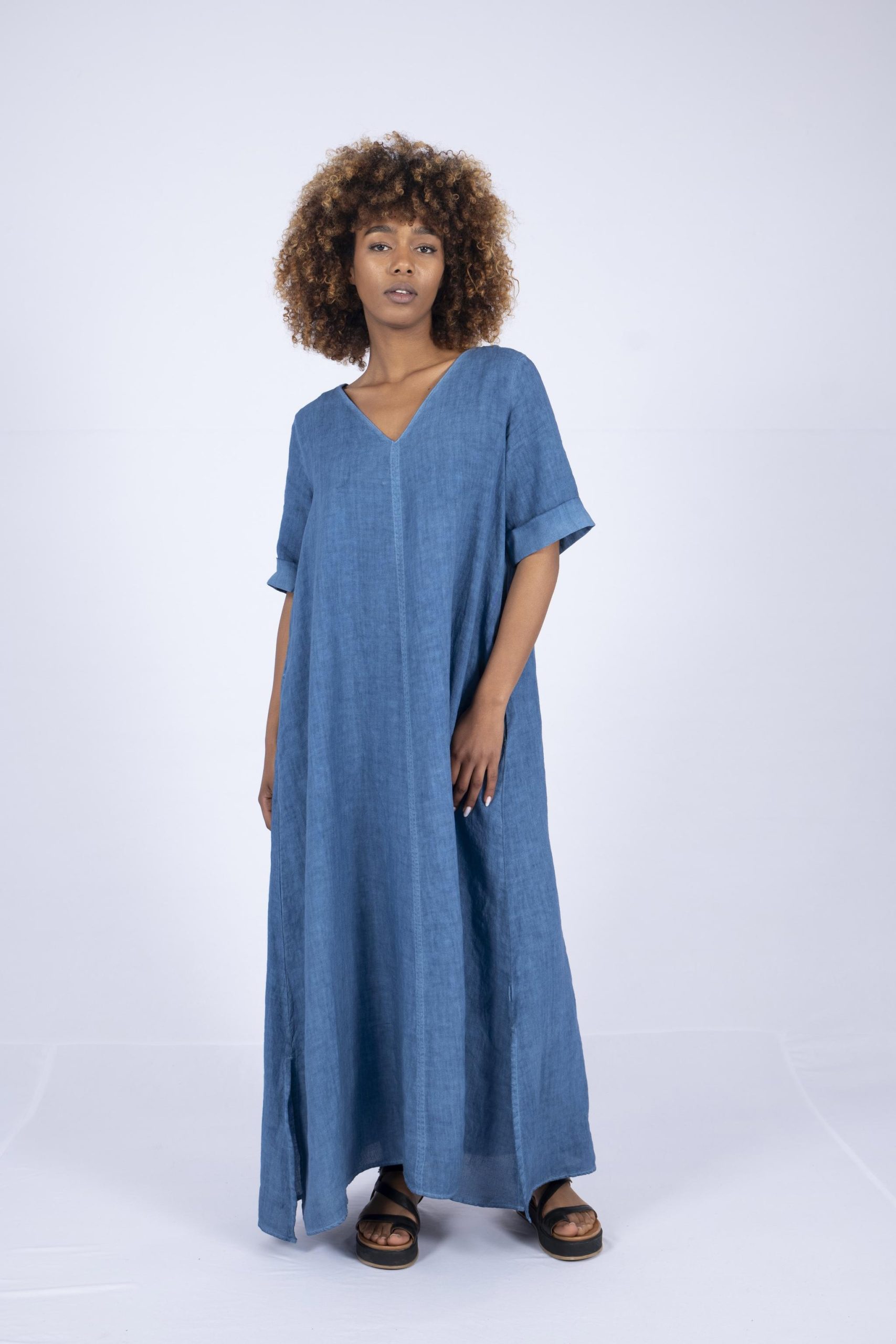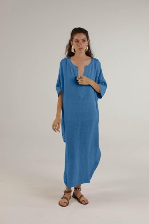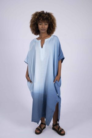 Langes Kleid im Kaftan-Style mit Armaufschlag