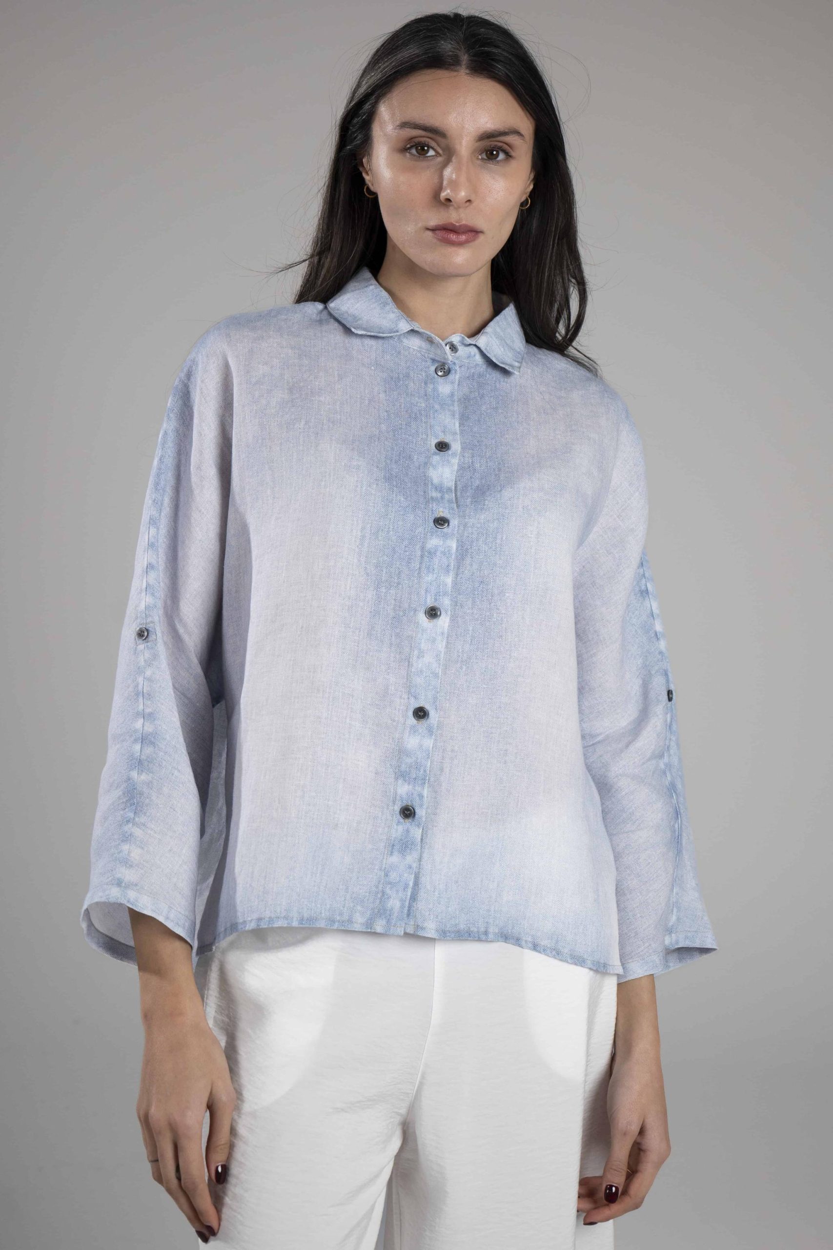 Kastig geschnittene Bluse mit Jeansdruck