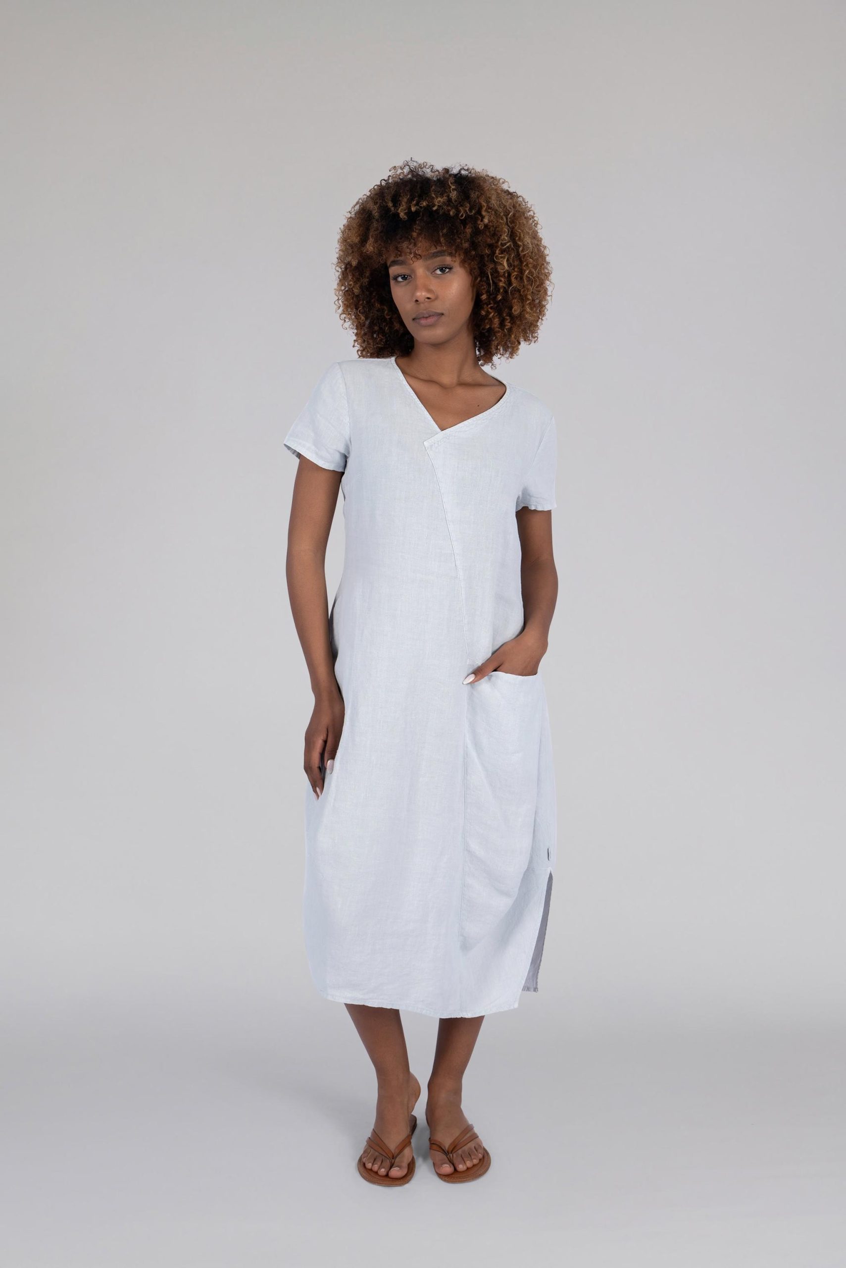 Kleid mit V-Ausschnitt und asymmetrischer Teilungsnaht
